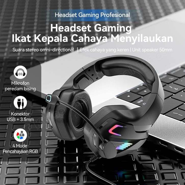 ASTON Headset Gaming RGB Profesional with Mikrofon 4 Mode RGB USB+3.5MM Jack Black Original