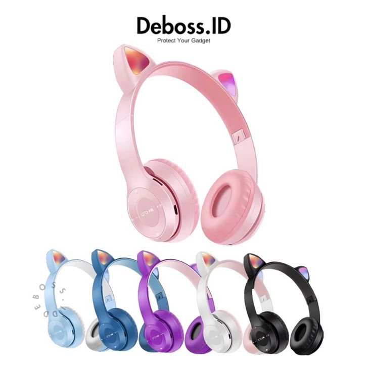 Deboss-P47M Headphone Headset Bluetooth Gaming Cat Ears Wireless Bluetooth RGB Led Light Super Bass