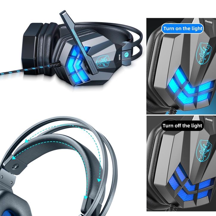 OneSOS Headset Gaming Microphone with LED Light Super Bass for Computer Laptop - SY850