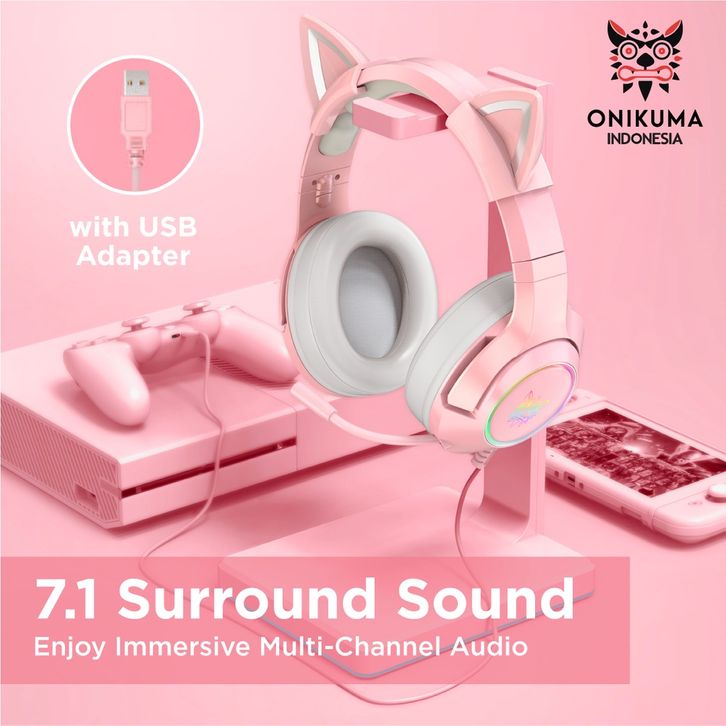 ONIKUMA K9 7.1 All Surround Headset Gaming RGB Headphone Cat Ear Headphone Mic Headphone Kualitas