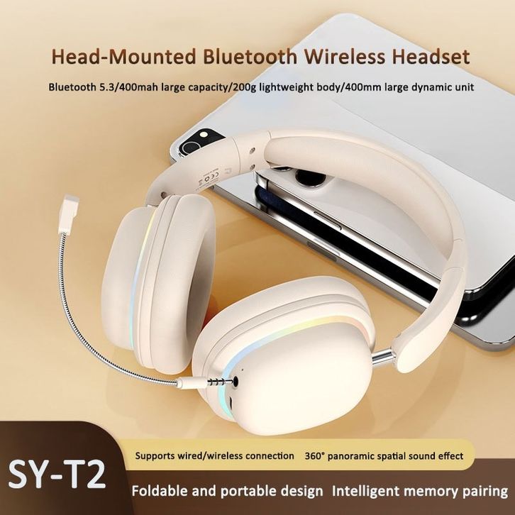 Headset Gaming Bluetooth 5.3 Wireless Headphone RGB Light 7.1 With Noise Canceling Mic Earphone