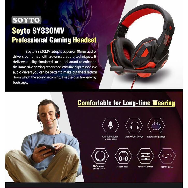 Professional Headset Dj Gaming e Sport Soyto SY830MV Stereo Super Bass Headphone Pc Hp Laptop