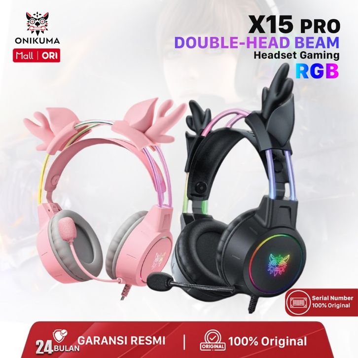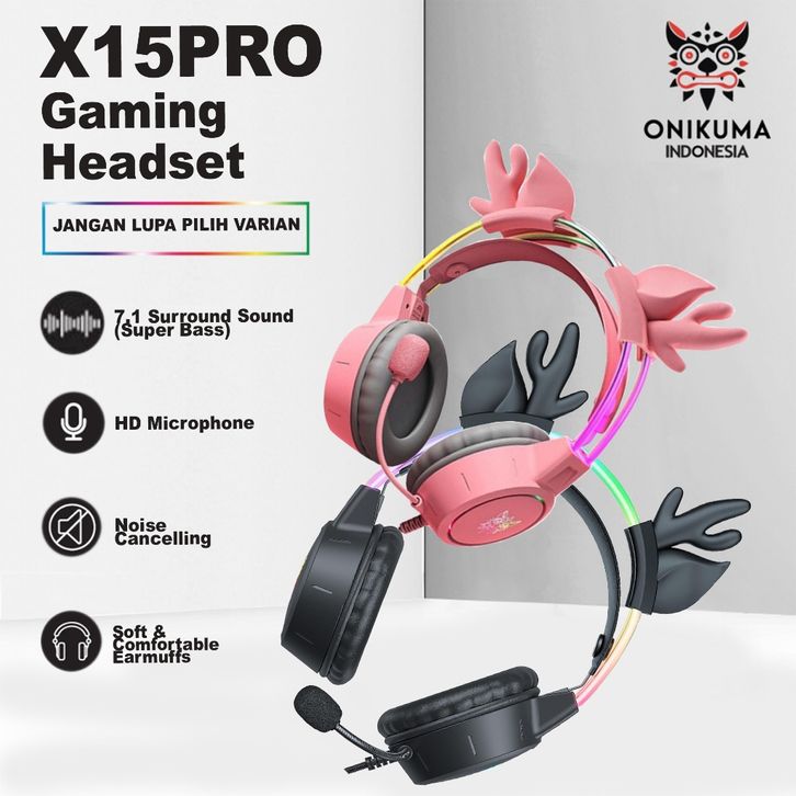 ONIKUMA X15 PRO Headphone Gaming Headset Gaming Black Pink Original - Headset Karakter Telinga Rusa
