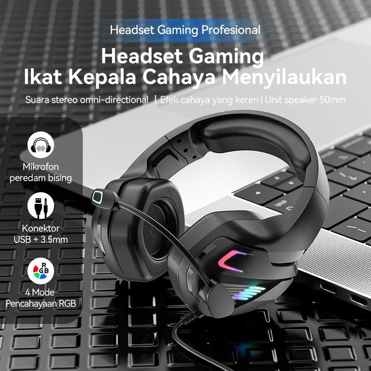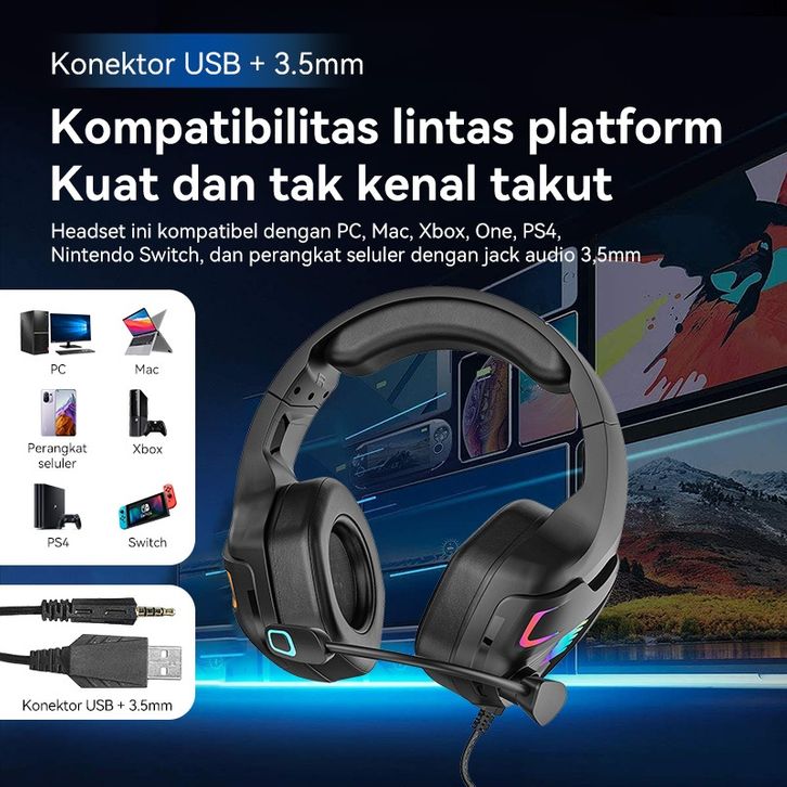 YLV Headphone Gaming Profesional RGB Wired Headset USB+3.5mm With Microphone Noise Cancellation