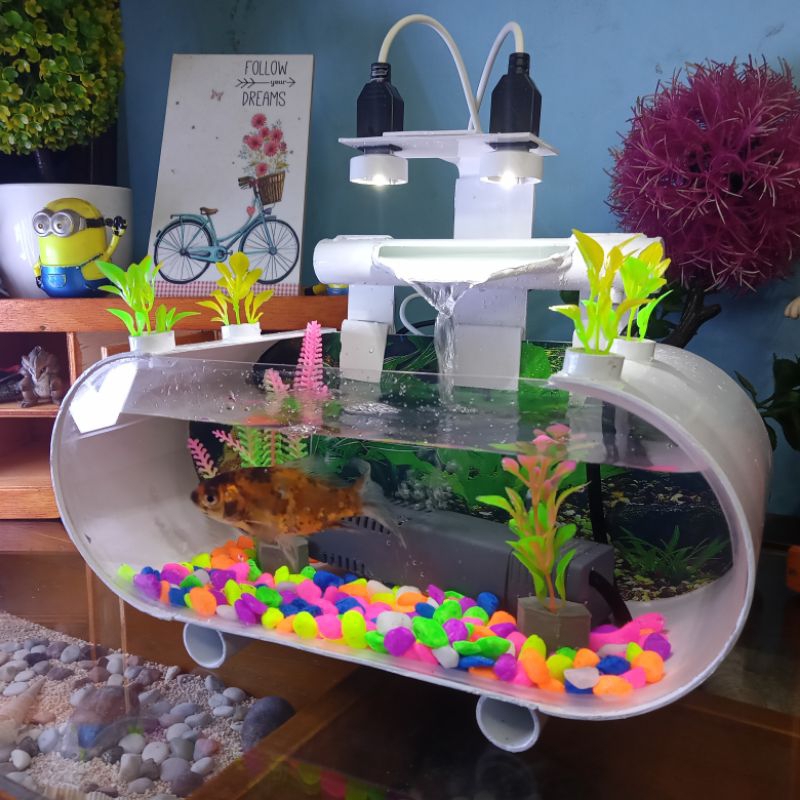 HIASAN AQUARIUM MINI MINIMALIS AKRILIK LENGKAP FULLSET IKAN HIAS CUPANG AIR TERJUN LAMPU LED USB AESTETIC DENGAN FILTER SET UNIK LUCU KEKINIAN
