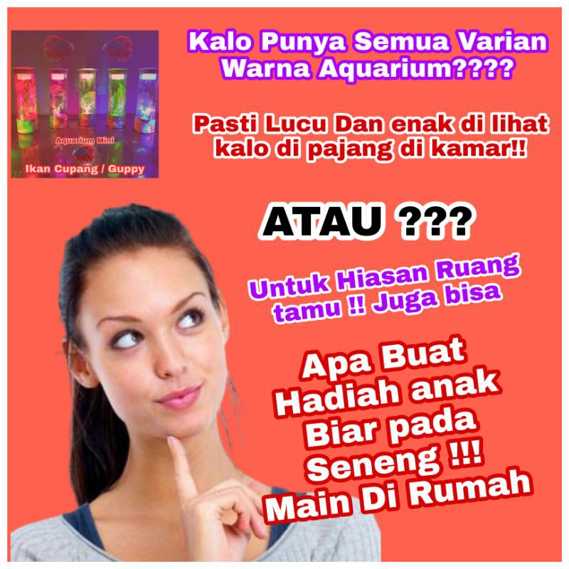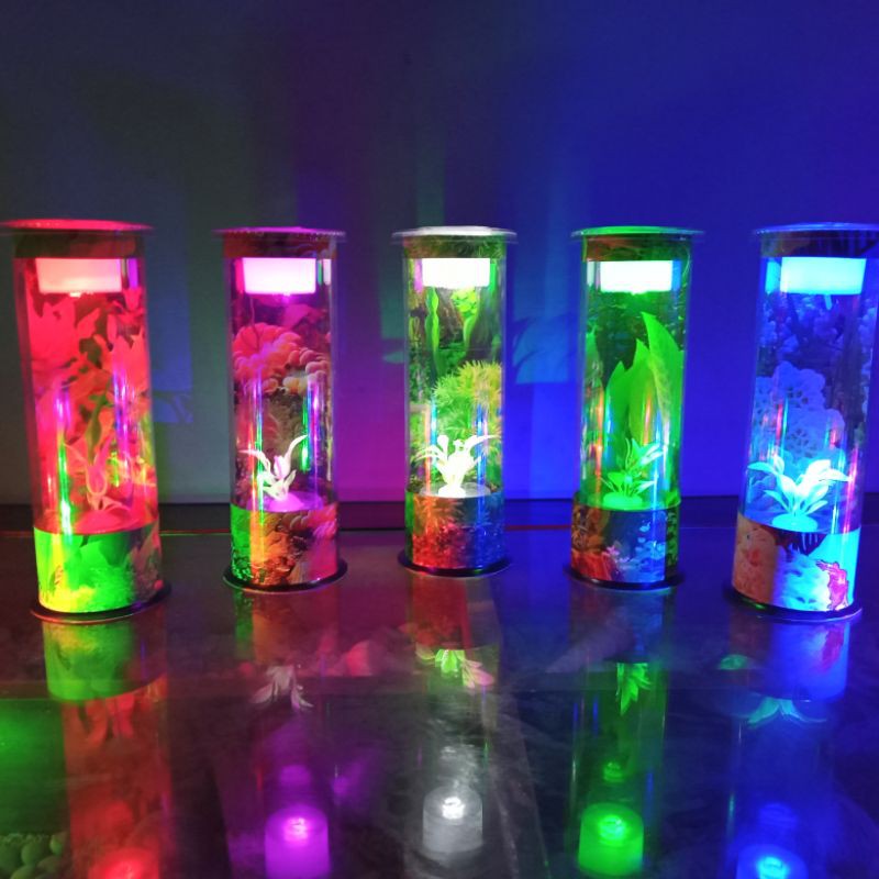 AQUARIUM AKUARIUM MINI TABUNG BULAT IKAN CUPANG GUPPY HIAS FULL HIASAN DAN LAMPU LED BATRAI MURAH