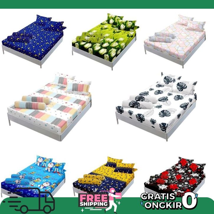 Sprei 1 Set Motif Bunga Karakter 180x200 / 160x200 / 140x200 / 120x200 / 90x200 Komplit Sarung Bantal Guling / murah