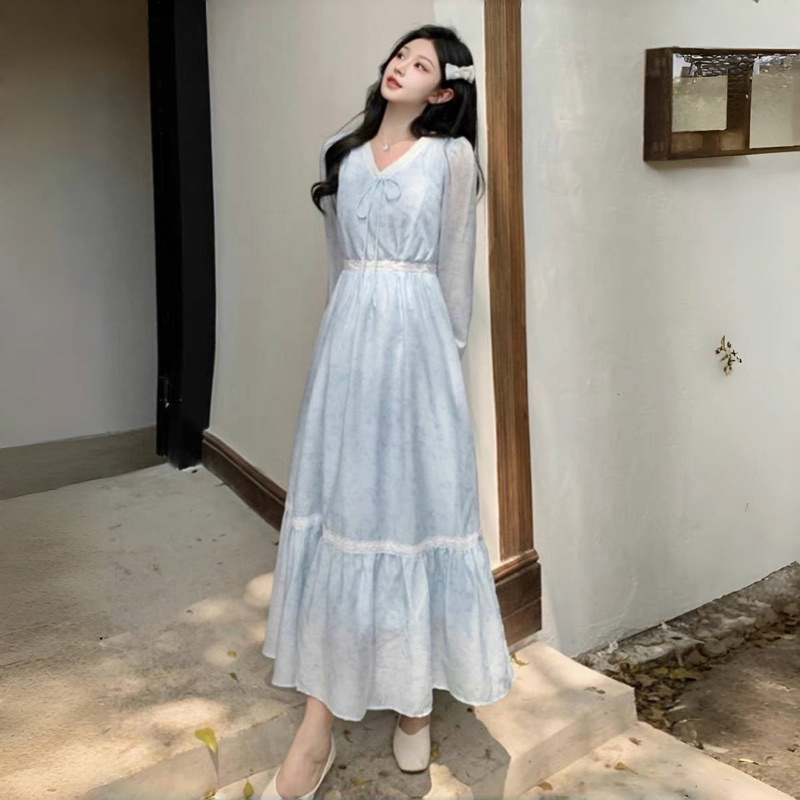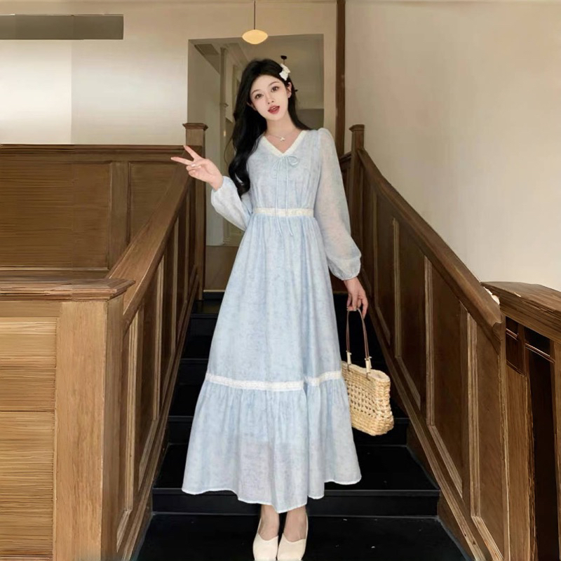 SUSANA MALL DRESS WANITA MODEL ELEGANT SKY BLUE FASHION KOREA M689