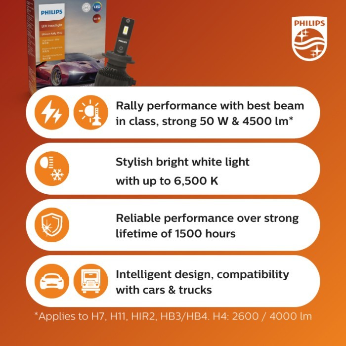 Lampu Mobil LED Philips Ultinon Rally 100 Watt Lampu Mobil H4 H11 H7 HB3 HB4 HIR2
