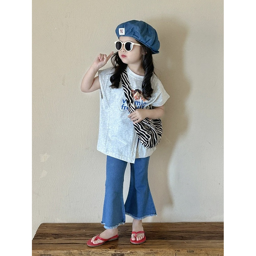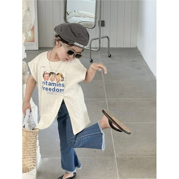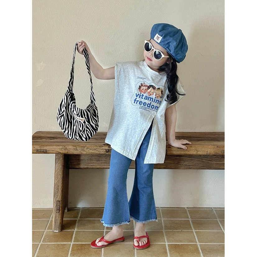 KINGOGO 2-8THN KOREAN ONESET STYLE SET ANAK CEWEK SETELAN ANAK PEREMPUAN T-SHIRT BELAH SAMPING + CELANA JEANS