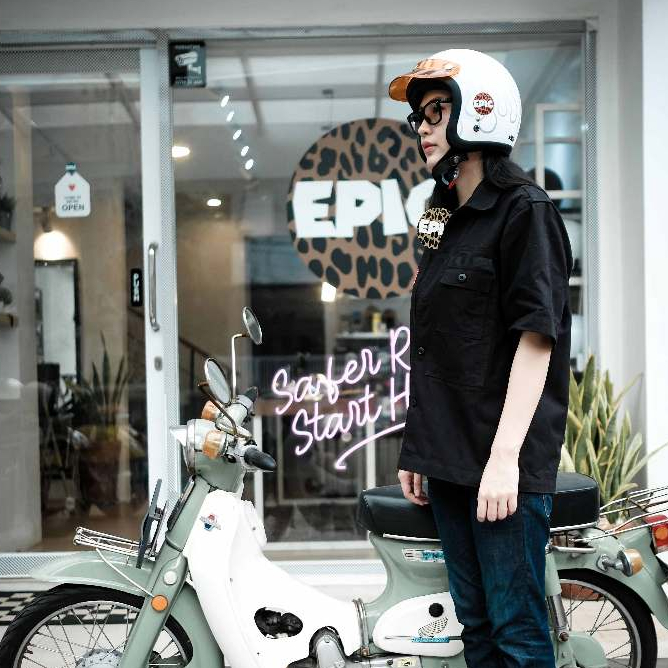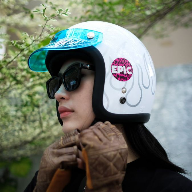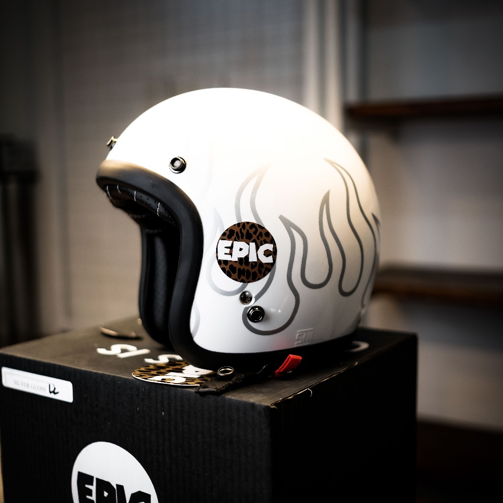 Epic Veil Slim Head Ev-500 Open Face White Flame Pattern List Black Helm Half Face Sni