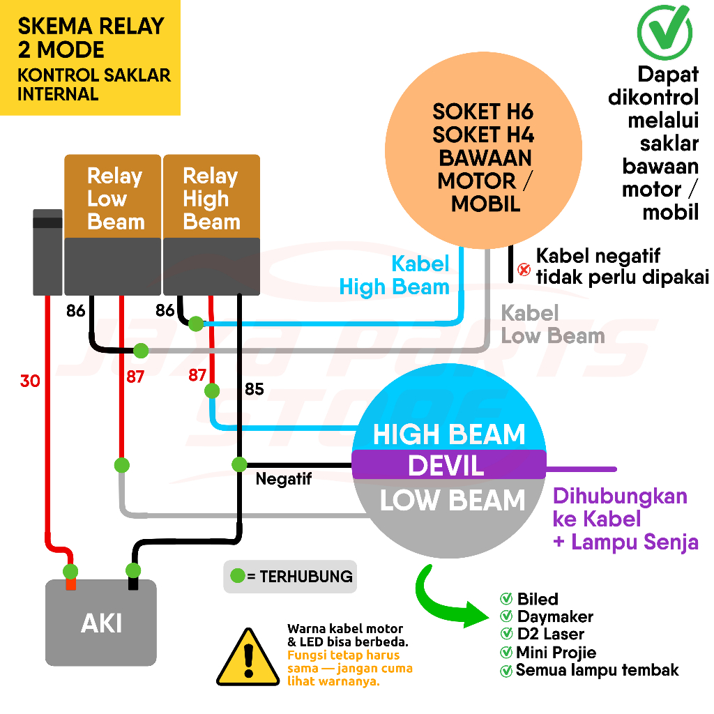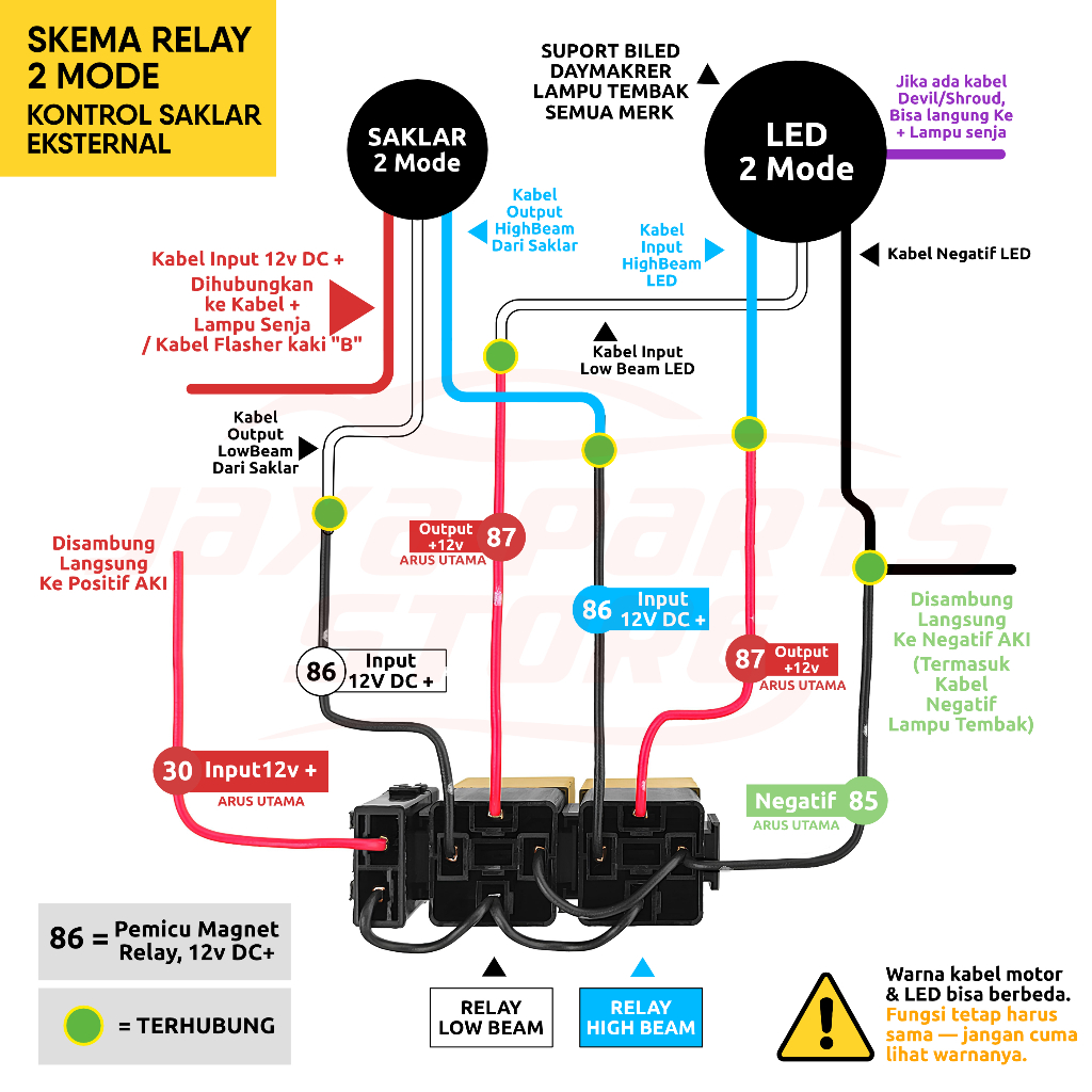 BARU Relay Untuk Lampu Biled Daymaker - Lampu Tembak D2 Laser - Relay 4 Kaki 12v 80A Tembaga - Riley 4 Pin