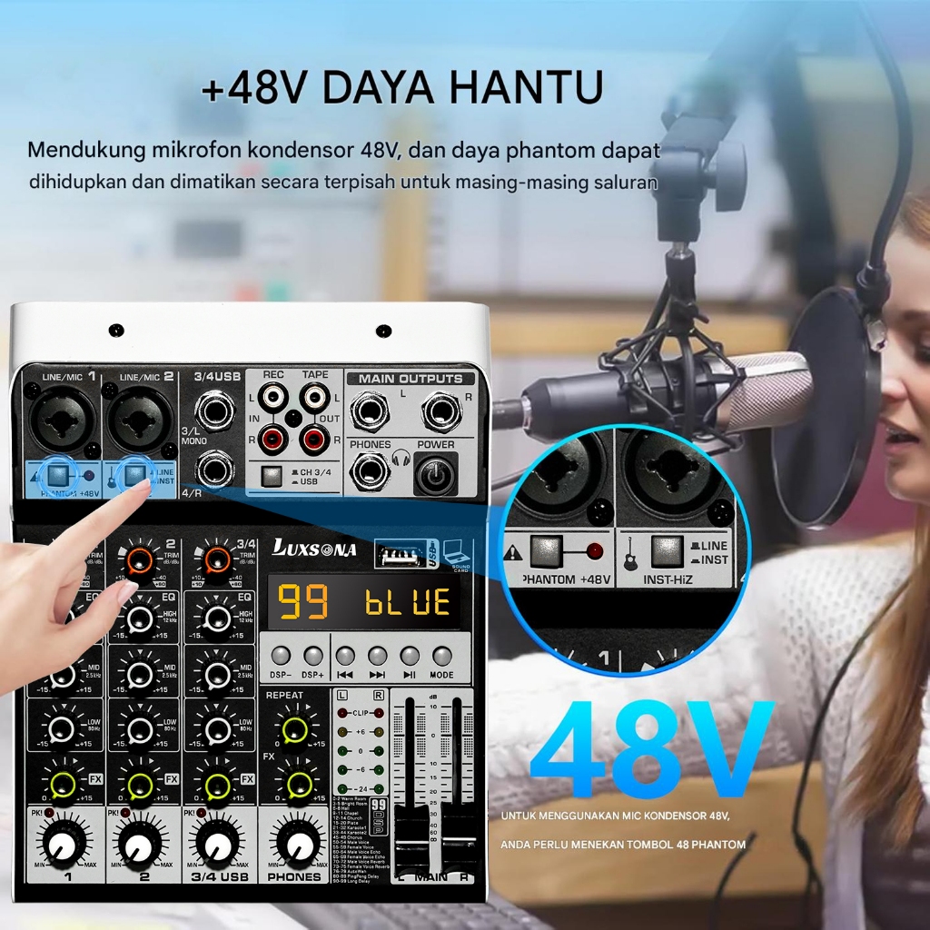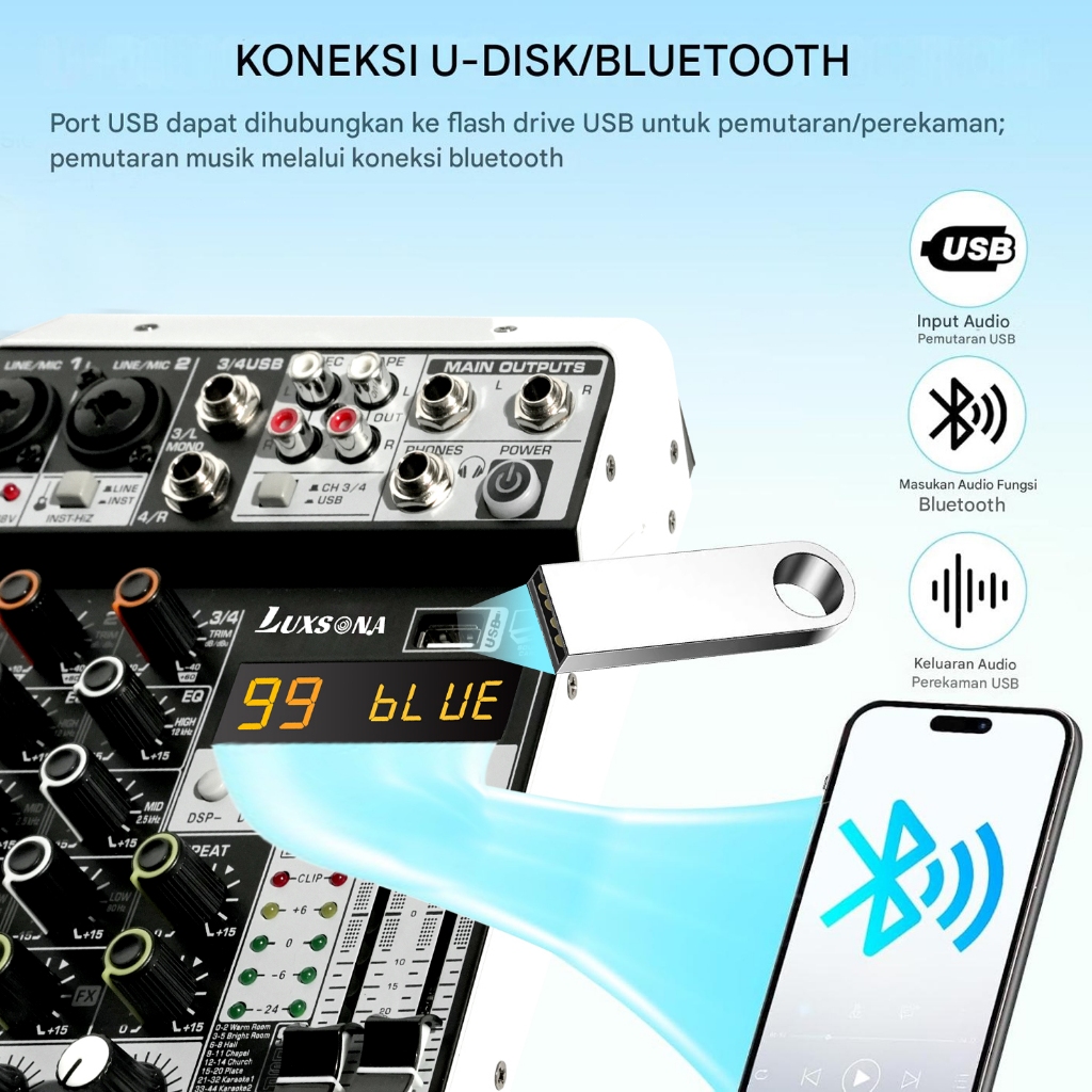 [Star] LUXSONA 4 Chanel Mixer Audio Profesional Original Premium Mixing Dengan USB/Bluetooth Stereo Input Digital 99 DSP