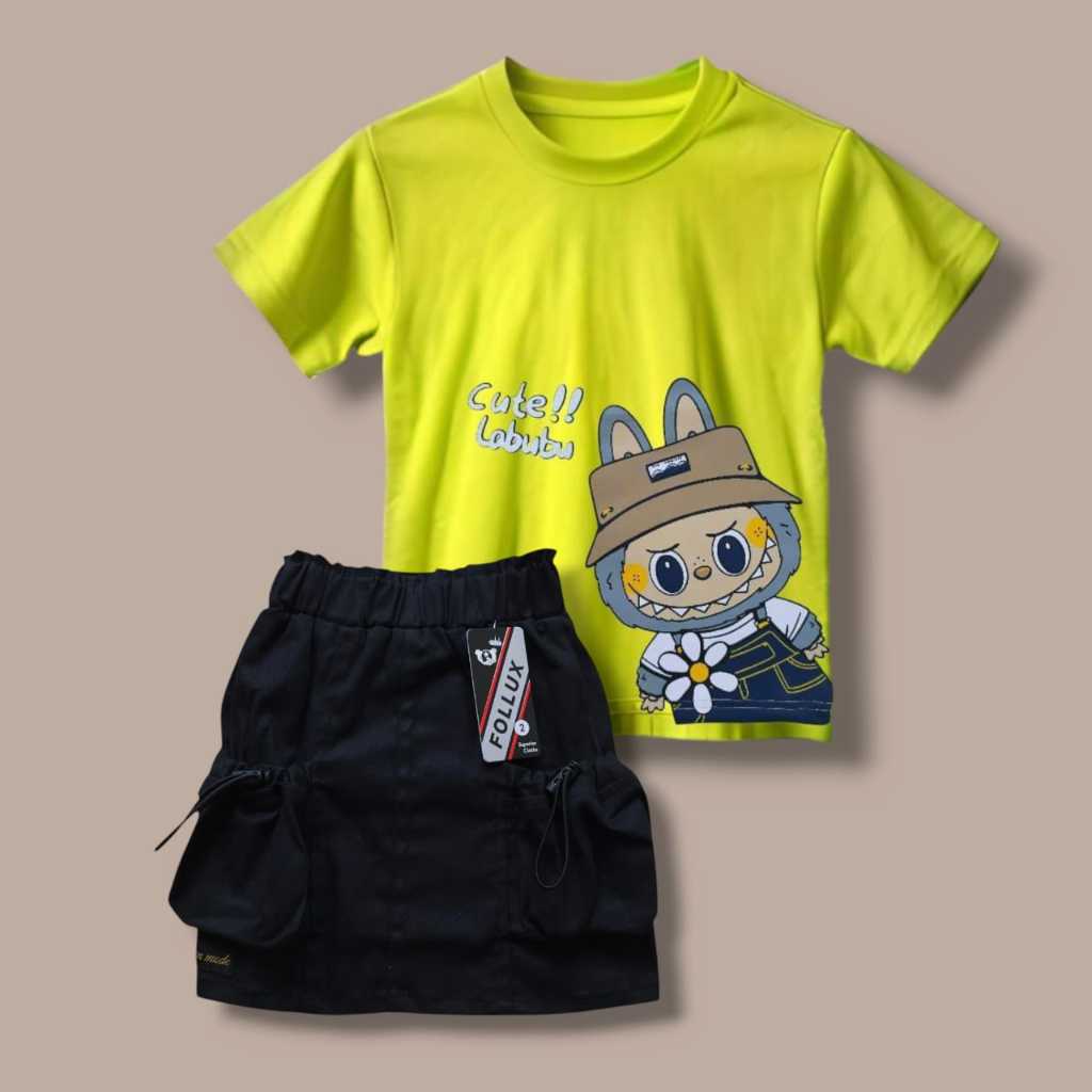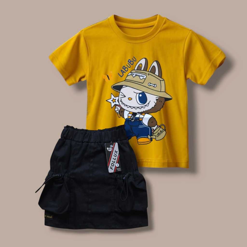 FOLLUX - ONESET LABUBU ROK CARGO SAKU SERUT ANAK PEREMPUAN LUCU USIA 1-7 TAHUN