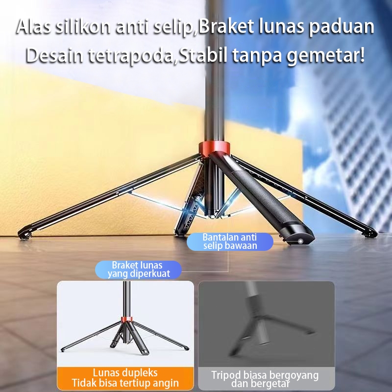 Akona 180CM Tongsis Tripod Handphone Bluetooth Remote Konten Kreator 360° Rotasi Tripod HP Anti Goyang 2 Lampu