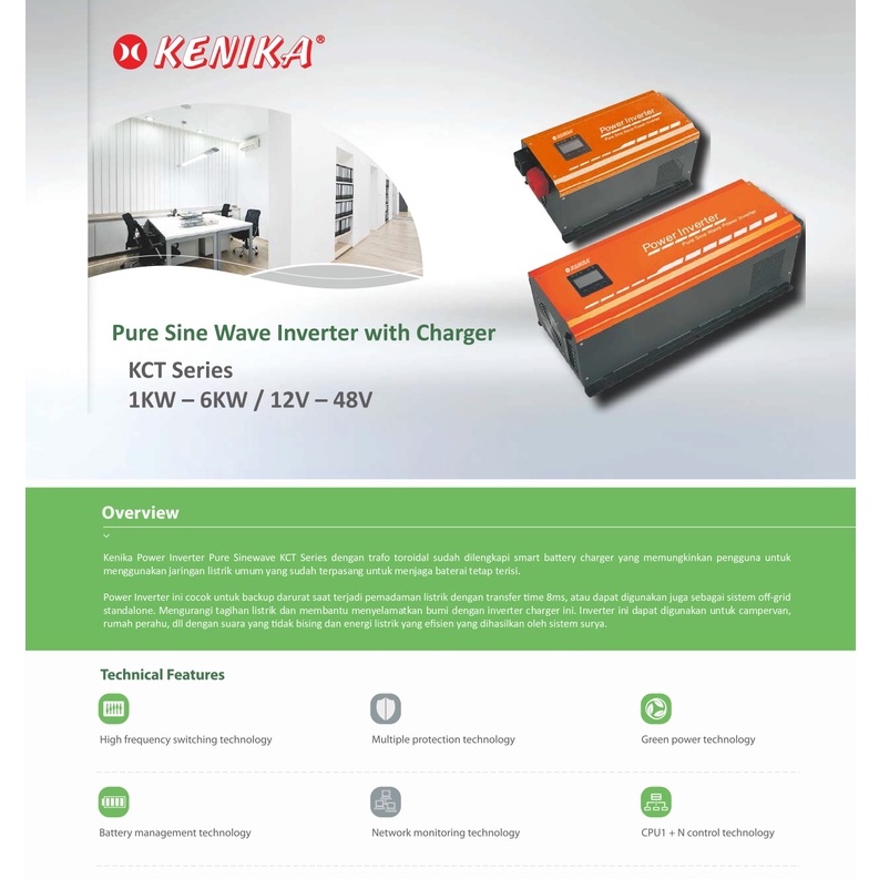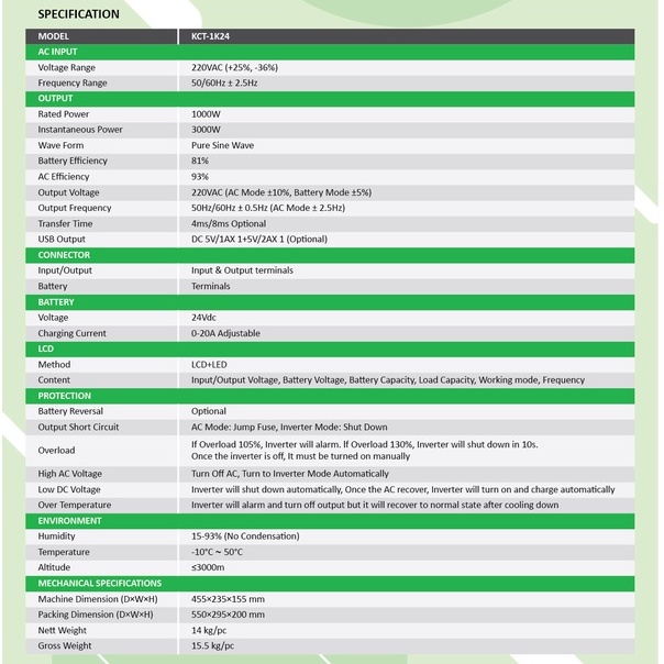 KENIKA SOLAR POWER INVERTER PURE SINE WAVE 1000W-24V DC [KCT-1K24]