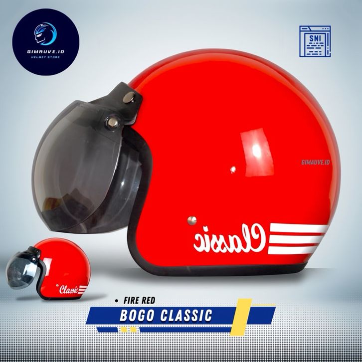 Helm Bogo Classic Premium Helm Halface FREE KACA Cembung atau Datar helm SNI [Gratis Ongkir]