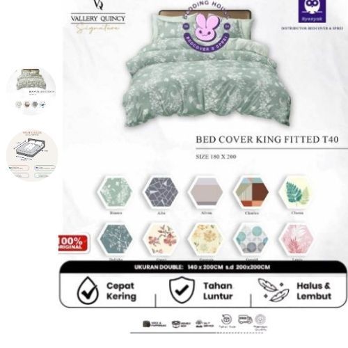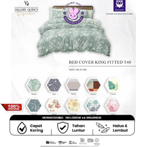 Bed Cover Set Sprei Vallery Quincy Signature Ukuran King 180x200 Tinggi 40 Bedcover Micro Silk Material Premium