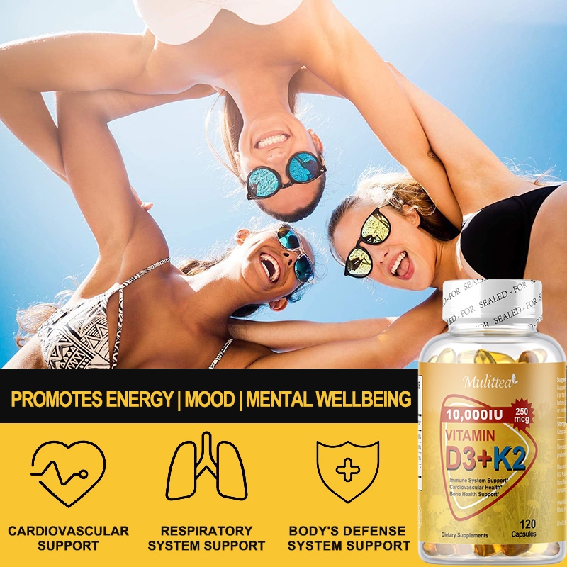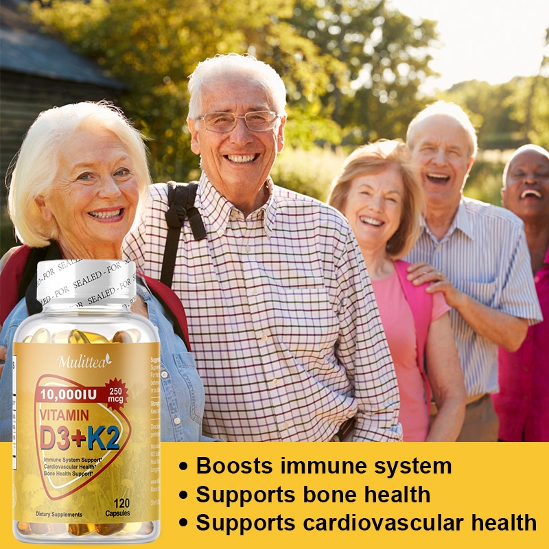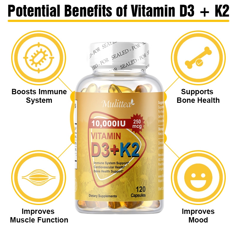 Mulittea Vitamin D3 10000iu with 250mcg vitamin K2(mk7) Capsules For Bone & joint Health Boosting Calcium Absorption Hearth Health