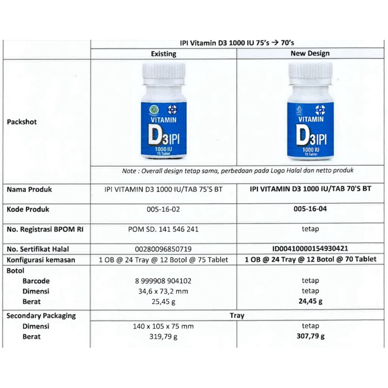 Vitamin D3 1000 IU IPI Vit D3 Isi 70 Tablet Ekonomis HALAL ORI BPOM