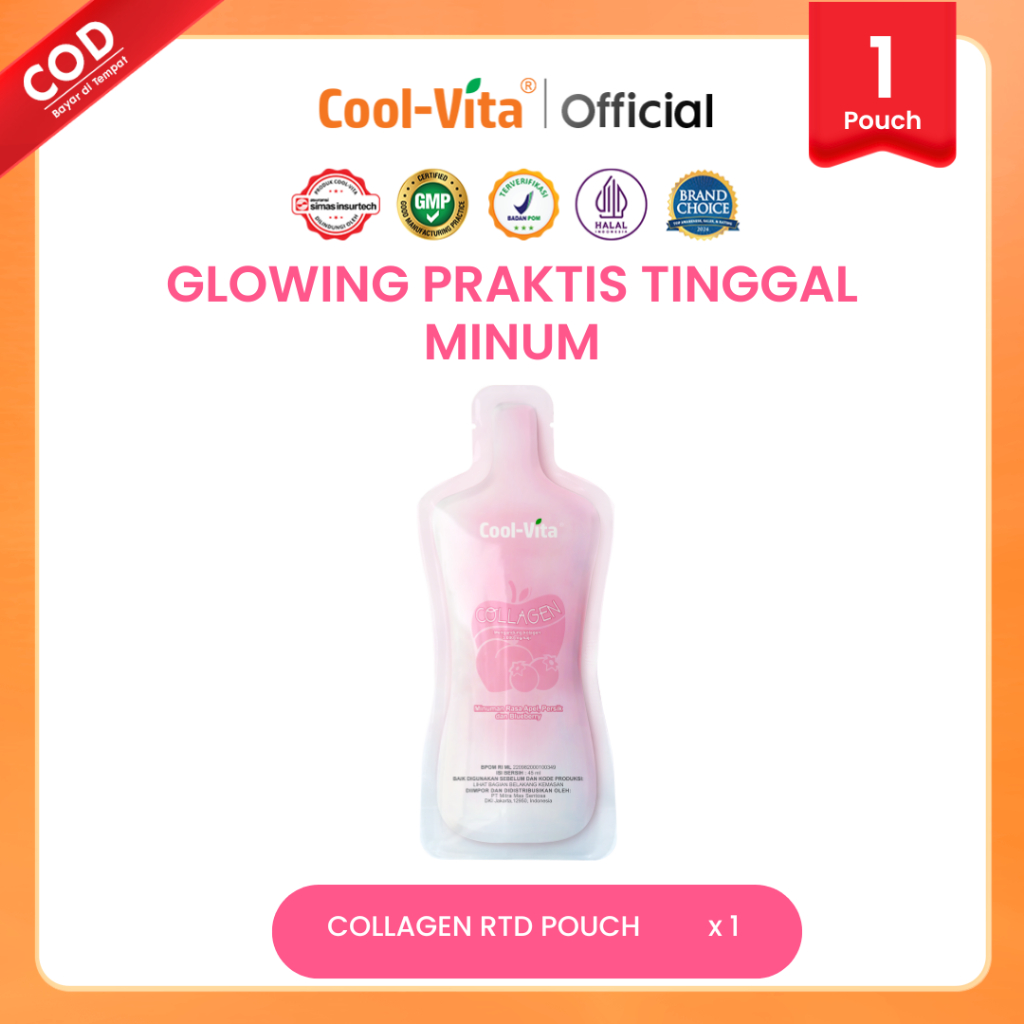 Coolvita 1 Pouch Premium Collagen RTD Siap Minum Rasa Peach dan Apel