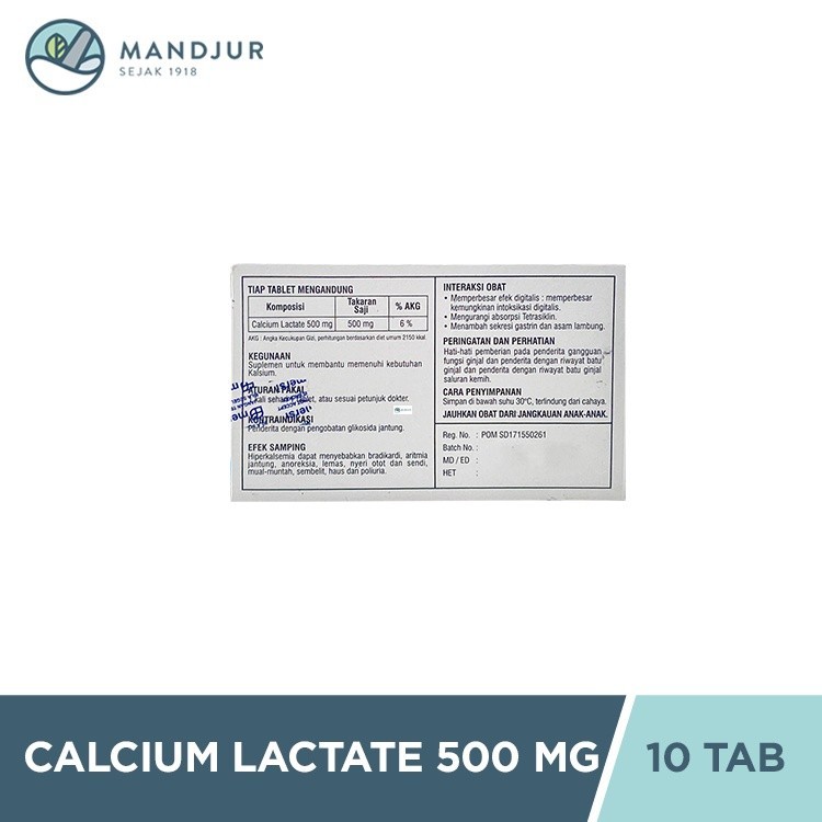 Calcium Lactate 500 Mg 10 Tablet - Memenuhi Kebutuhan Kalsium