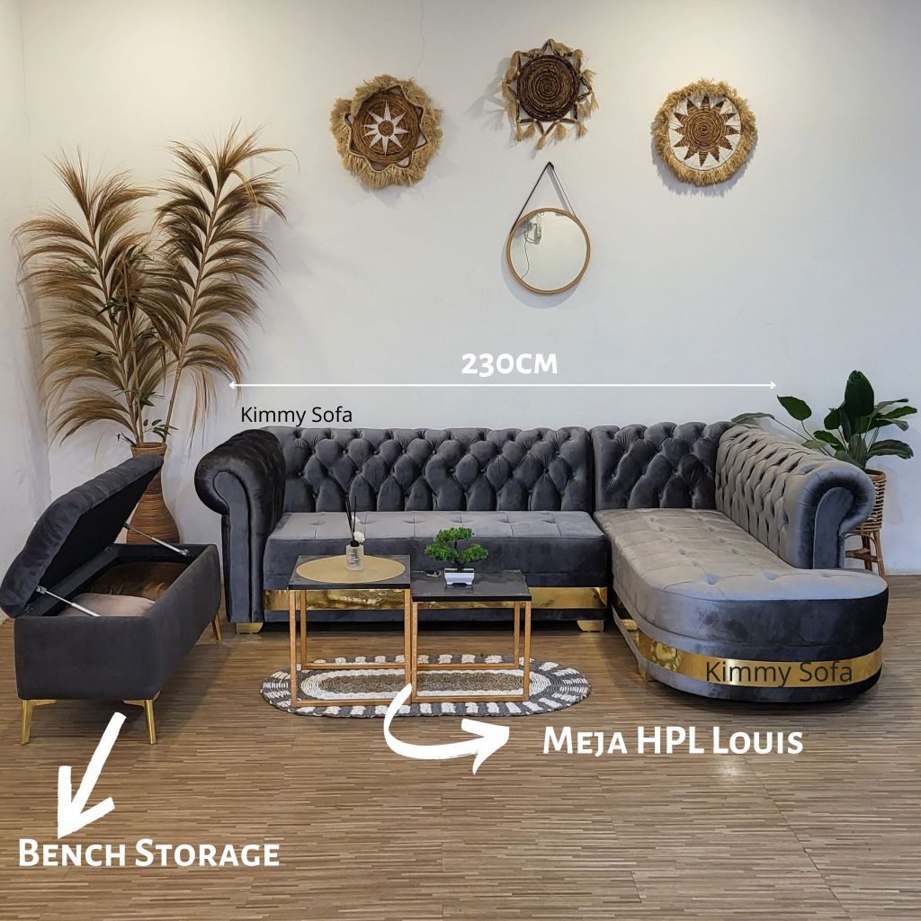 sofa set SOFA L Santai Chesterfield Classic Nolan Kancing 250cm sofa ruang tamu sofa bed sofa ruang tamu minimalis