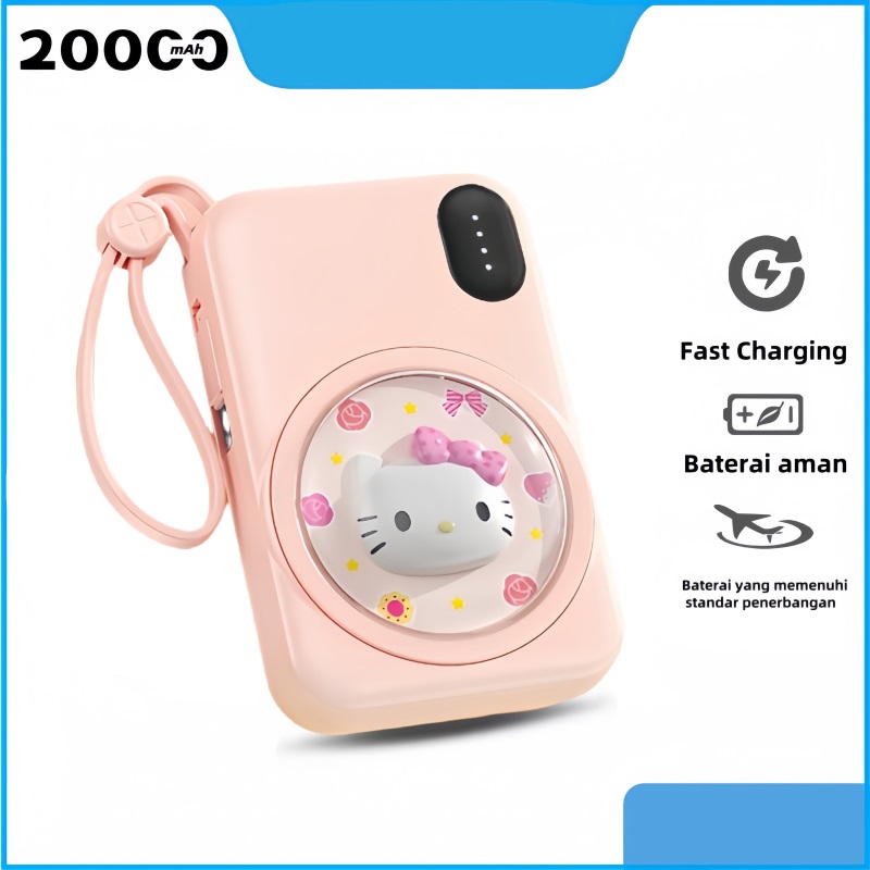 [Mall] POWER BANK 20000mAh FAST CHARGING HELLO KITTY KUROMI Kabel 3in1 Built-in + Desain Lucu