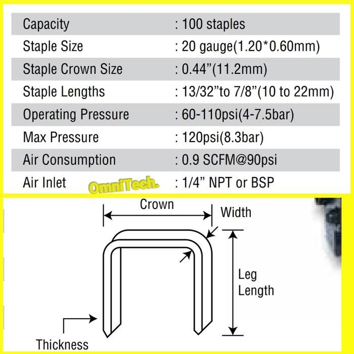Mesin Air Stapler "U" Angin JIS Japanese Standard Tekiro 1022J 1022 J