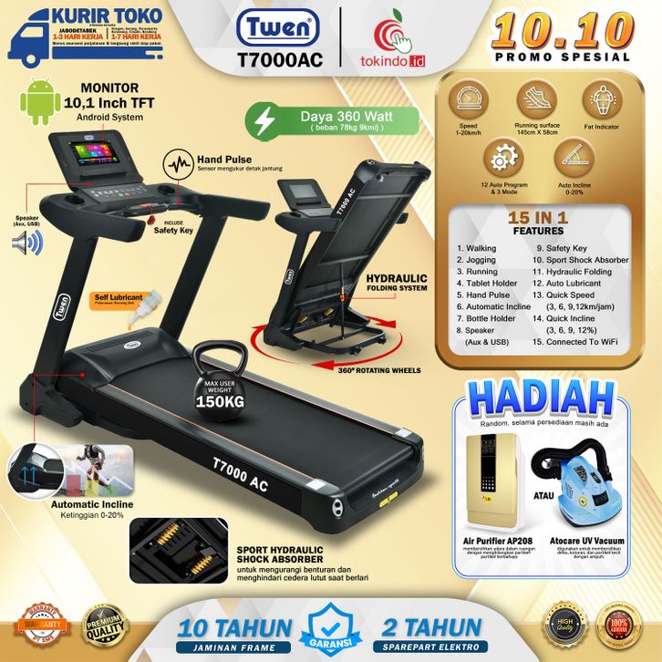 TWEN T7000AC Treadmill Listrik Treadmill Portable Treadmill Multifungsi Treadmil Lipat Alat Olahraga