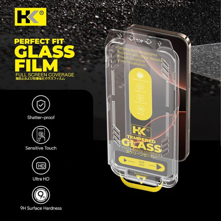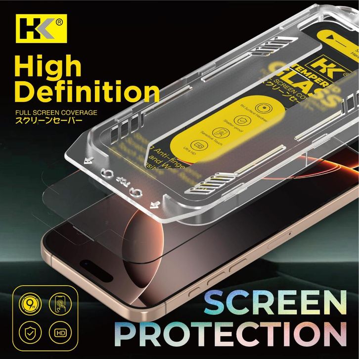 HK Easy Fit Clear Tempered Glass iPhone 16 / 16e / 15 / 14 / 13 / 12 / 11 / XR / PRO / PLUS Full Cover Original