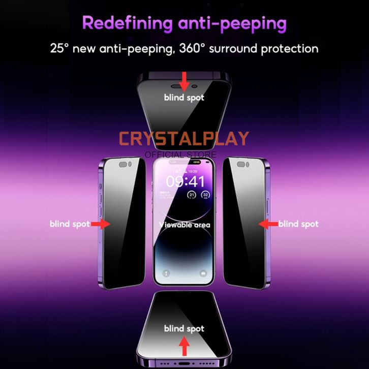CrystalPlay Tempered Glass Anti SPY Privacy Anti Gores Screen Protector Fullcover for iPhone 15 PLUS Pelindung Layar Ha