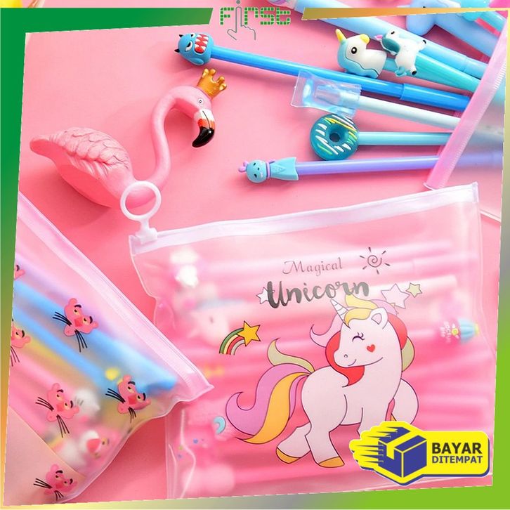 Promo **FH-A15 Pulpen Gel Karakter Lucu Set Isi 20PCS Pena FREE Zipper Pouch Tempat Pensil
