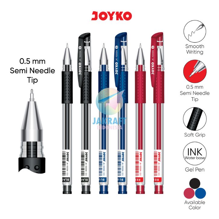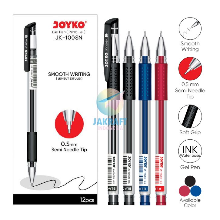 Promo (12 Pcs) GROSIR Pulpen Gel Pen JOYKO King Jeller JK-100SN Hitam Black Biru Blue Merah Red 0.5