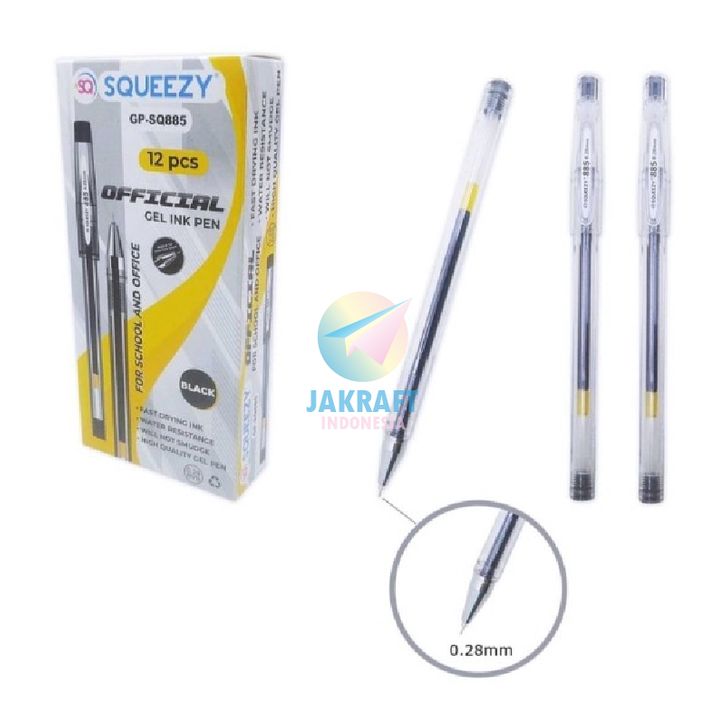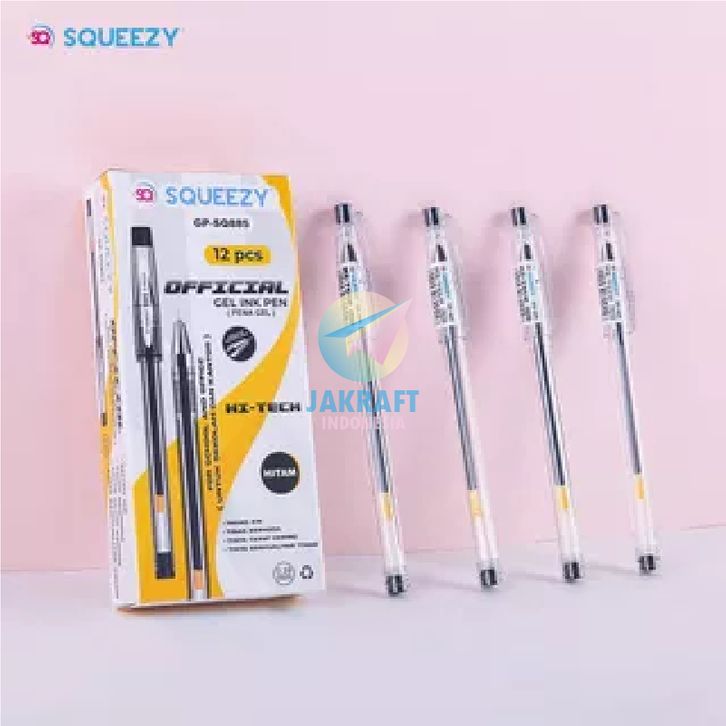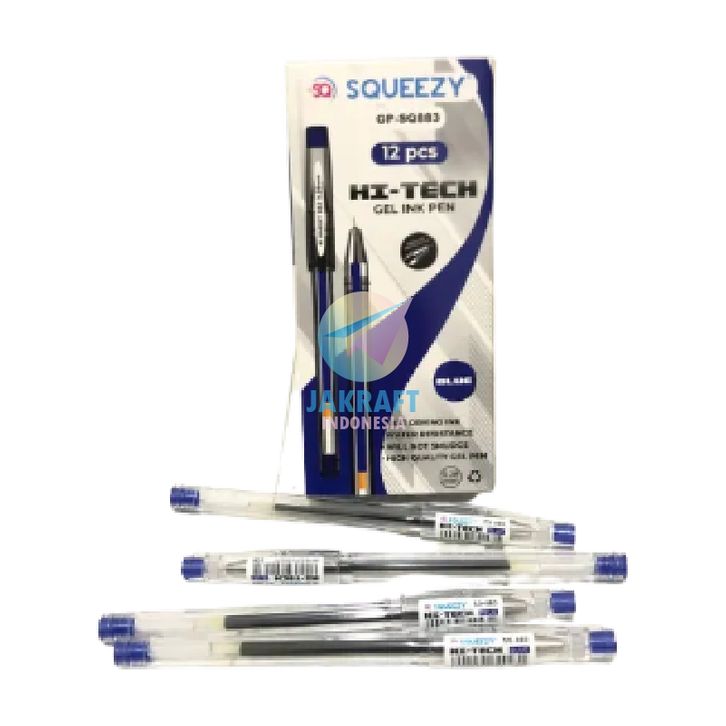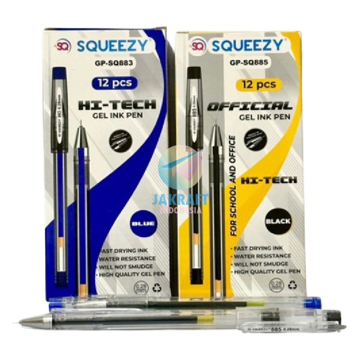 Promo (12 Pcs) Pulpen Gel Pen SQUEEZY GP-SQ885 Hitam Black GP-SQ883 Biru Blue Hi-Tech Needle Tip