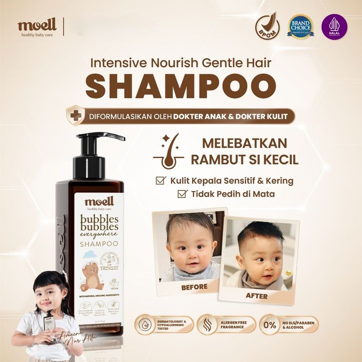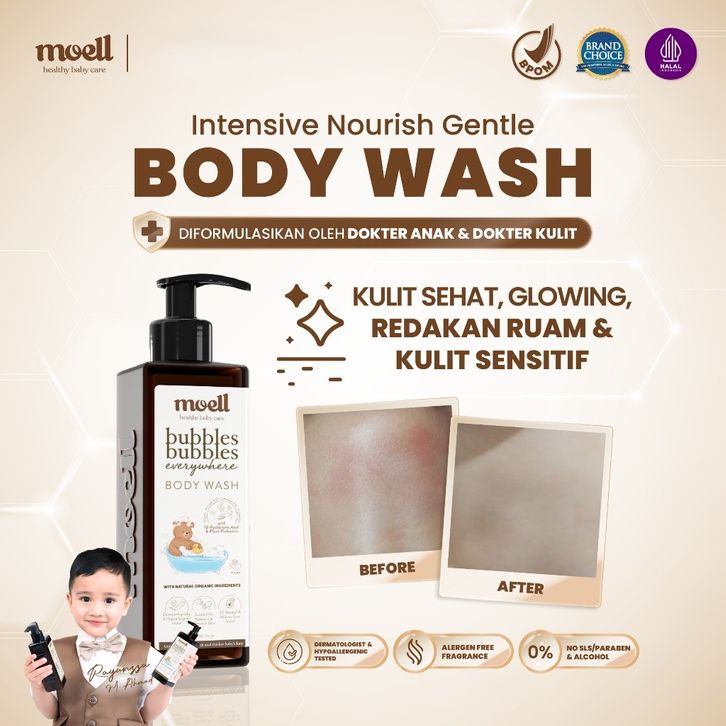 Gentle Body Wash Moell Bayi Anak 185gr Kulit Kering dan Sensitif - Sabun Mandi Tanpa SLS & Alkohol - Melembapkan dan Mer