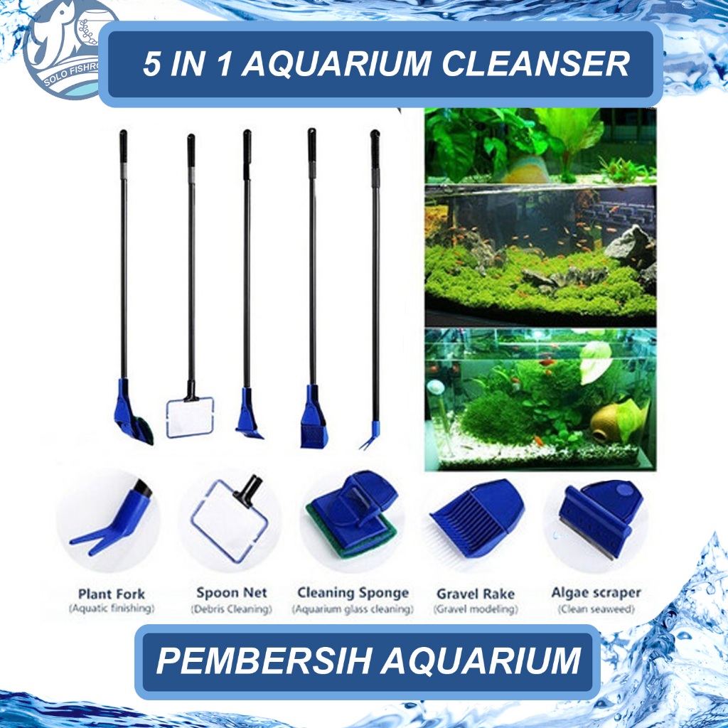 AQUARIUM CLEANING SET 5 IN 1 TONGKAT CLEANER ALAT PEMBERSIH KACA SCRAPER AQUASCAPE