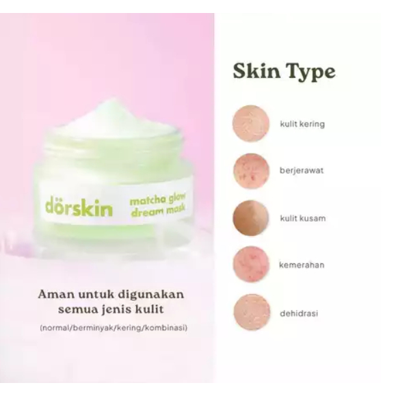 Dorskin Matcha Glow Dream Mask Moisturizer - 2in1 Pelembap dan Obat Totol Jerawat Pagi Malam Tekstur Gel Cream Centella