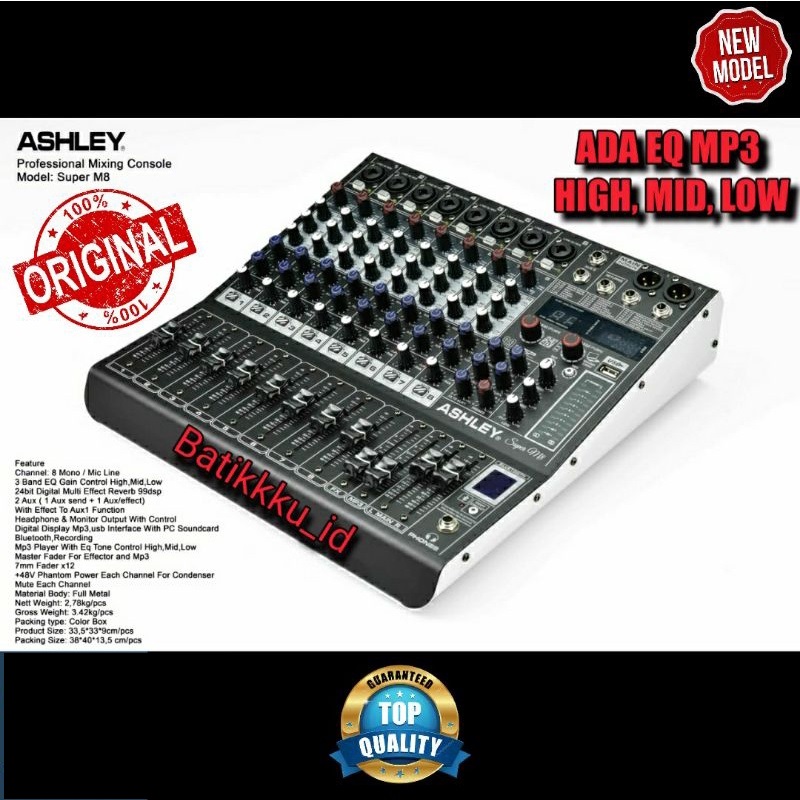 MIXER AUDIO ASHLEY SUPER M8 COMPRESSOR SUPERM8 SUPER M 8 ORIGINAL WITH COMPRESSOR BLUETOOTH-RECORDING-USB
