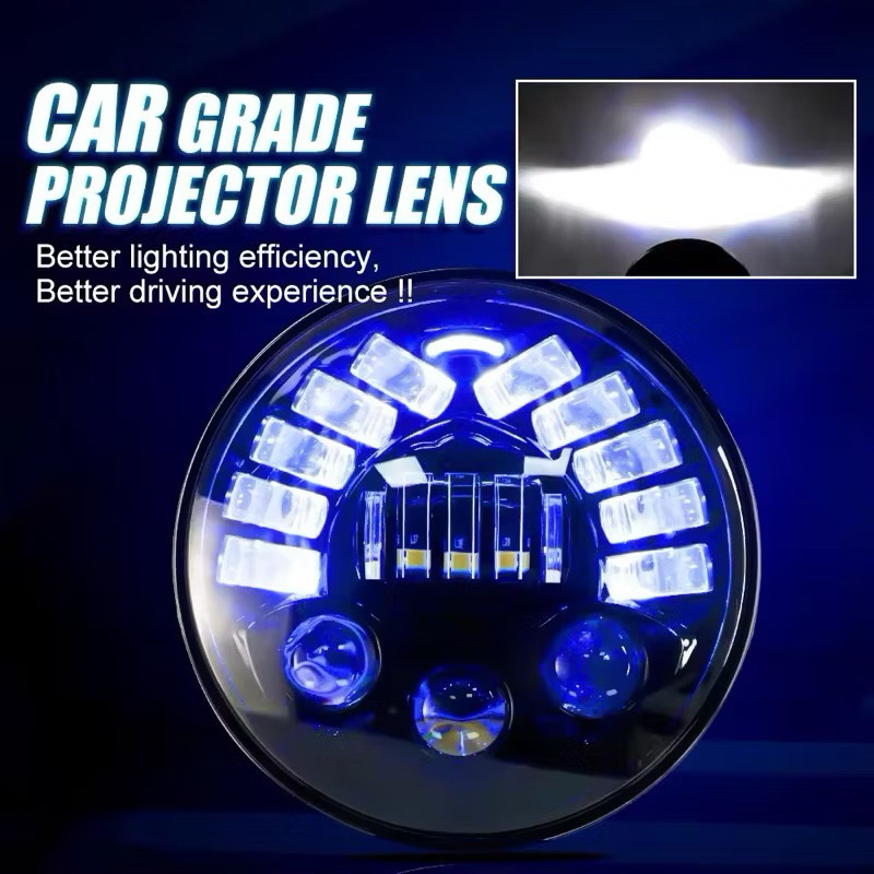 Lampu LED DOT SAE 7 inch inci BULAT Halo Ring Batok Lampu Utama Motor Mobil Harley Jeep 7inc BULAT