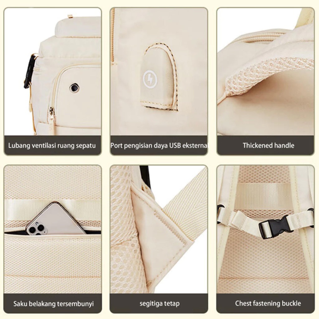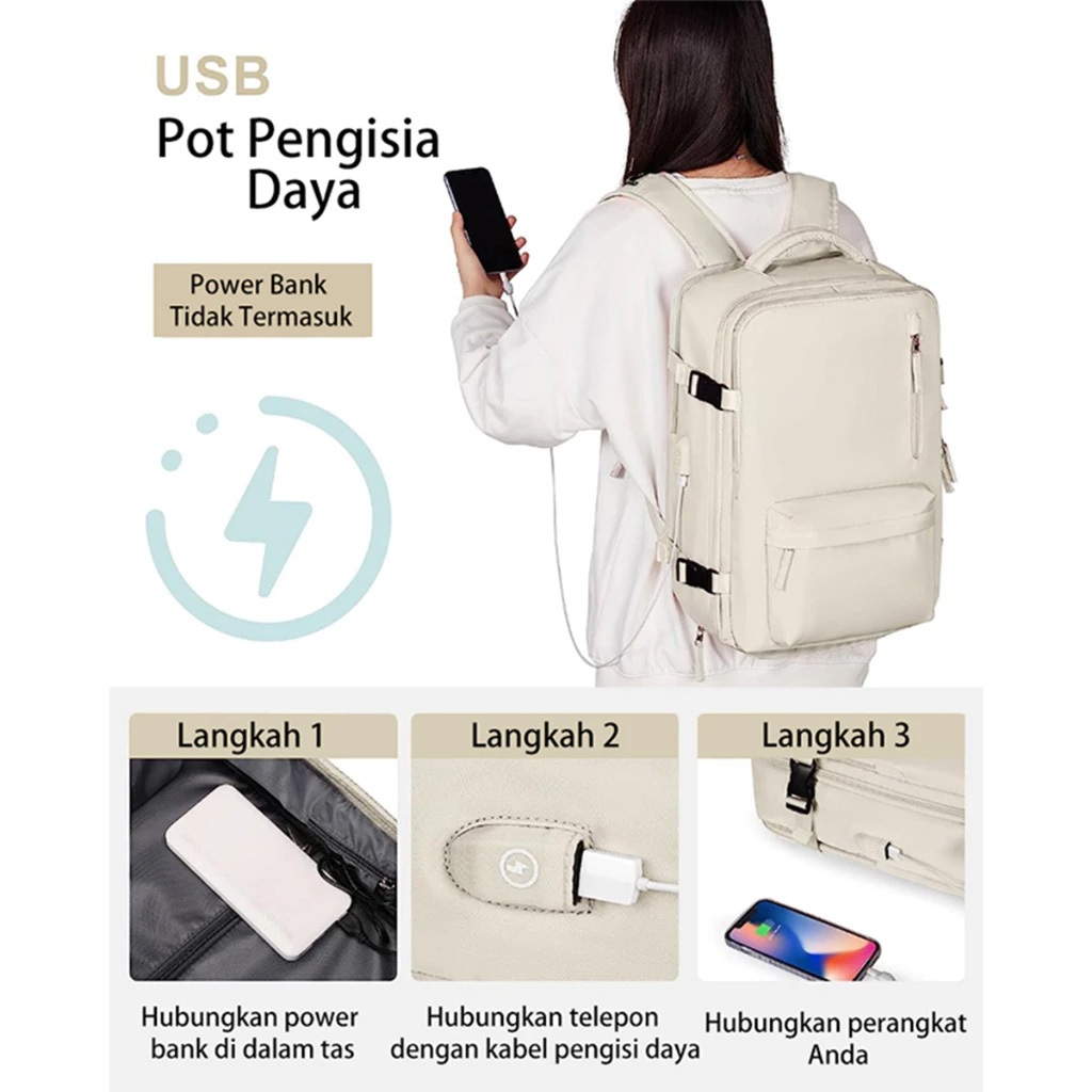 Tas Ransel Multifungsi Wanita Tas Travel Lapisan Ganda Penuh yang Dapat Diperluas Bahan Kain Oxford Tahan Air Berkualita