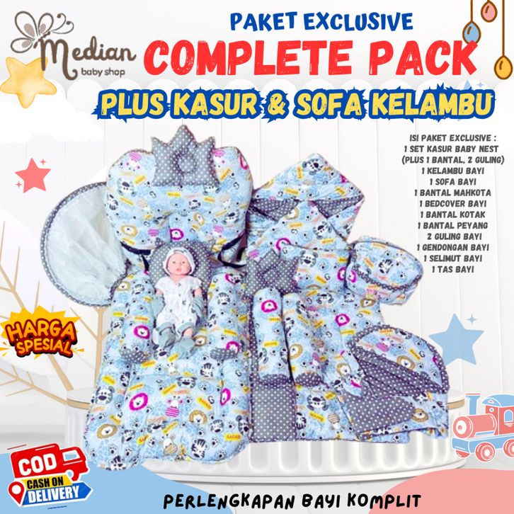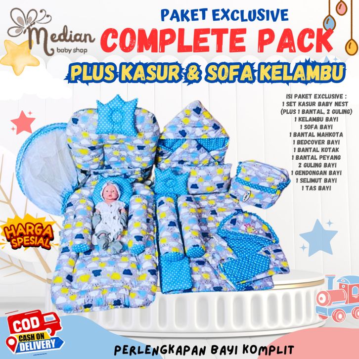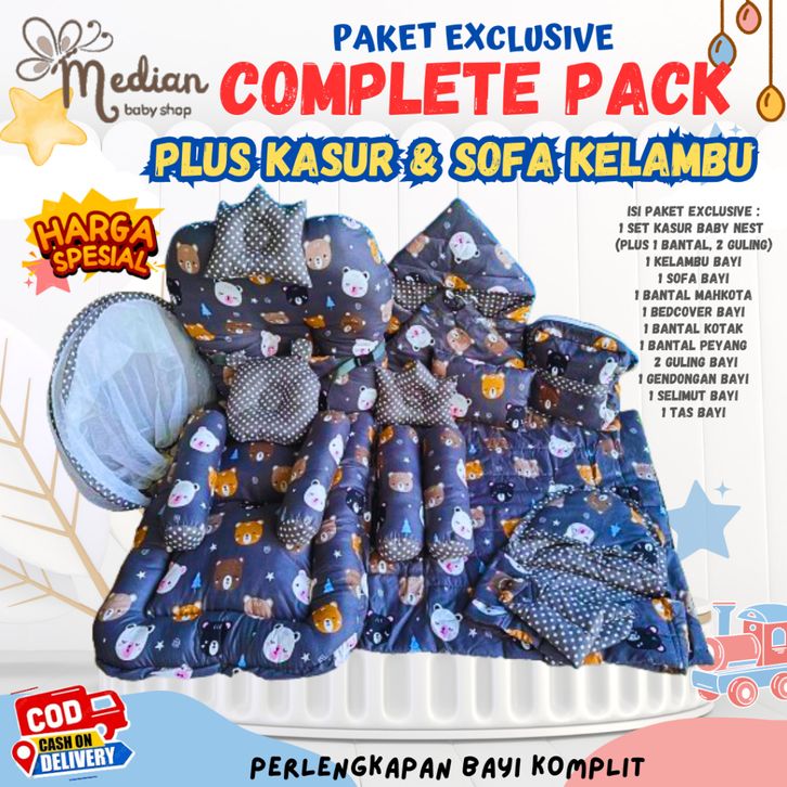 Paket COMPLETE!! Perlengkapan Bayi Baru Lahir-Kasur Kelambu+Sofa Bayi+Bedcover+Selimut+Gendongan+Tas