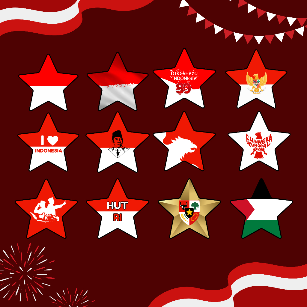(Isi 160 Pcs) Stiker Pipi Bendera Merah Putih Motif Bintang Cromo l Kemerdekaan Indonesia 17 Agustus