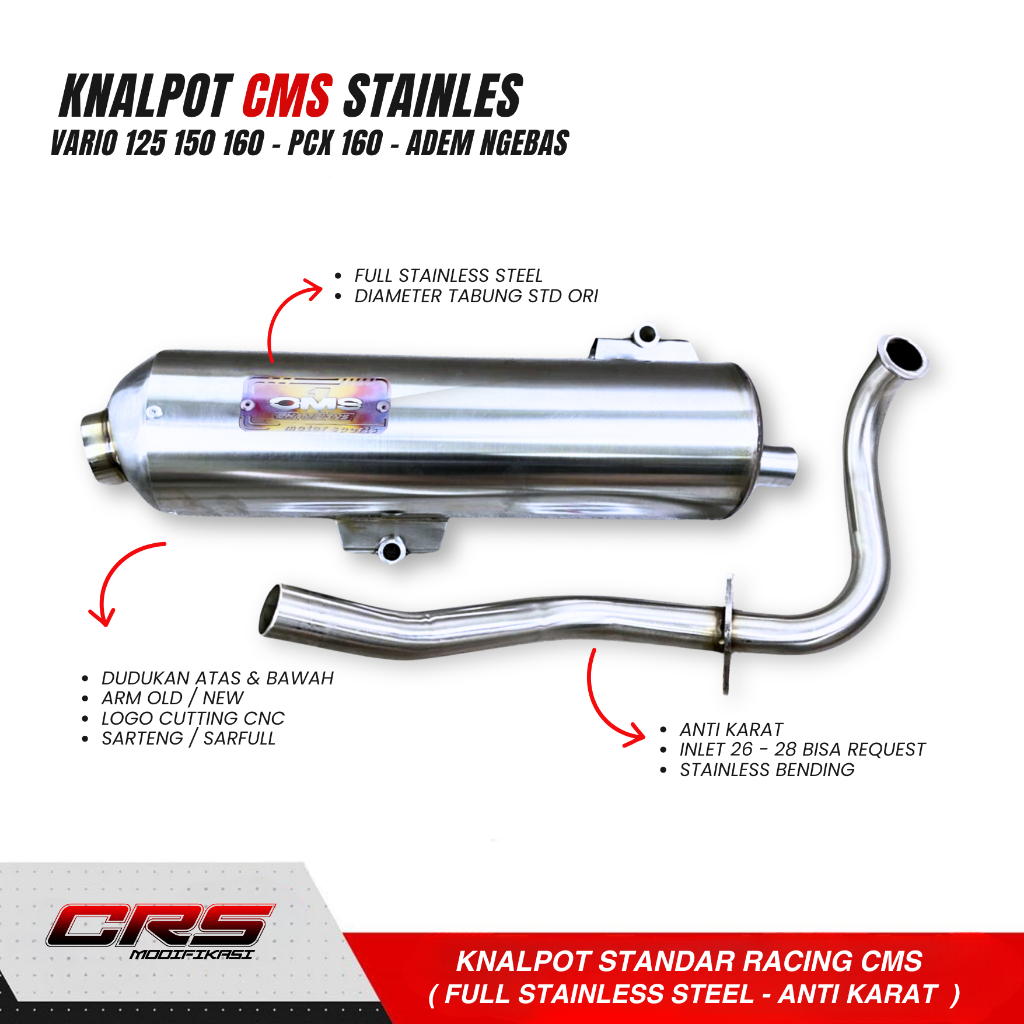 KNALPOT CMS FULL STAINLESS VARIO 125 150 160 LED OLD LED NEW - KNALPOT LUSTER VARIO KNALPOT ADEM