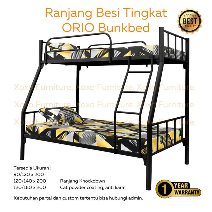 Ranjang Susun 2 Orio Besi Minimalis Bunked Bed 90/120 x 200