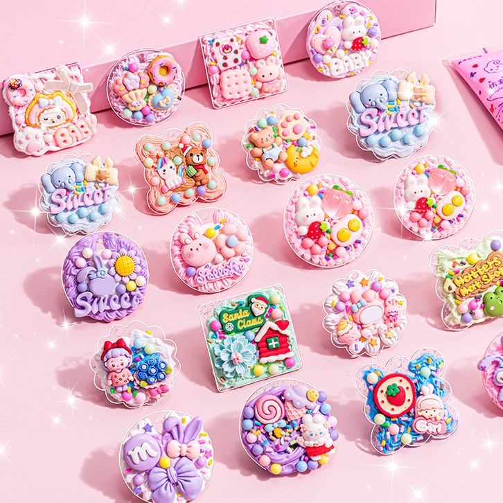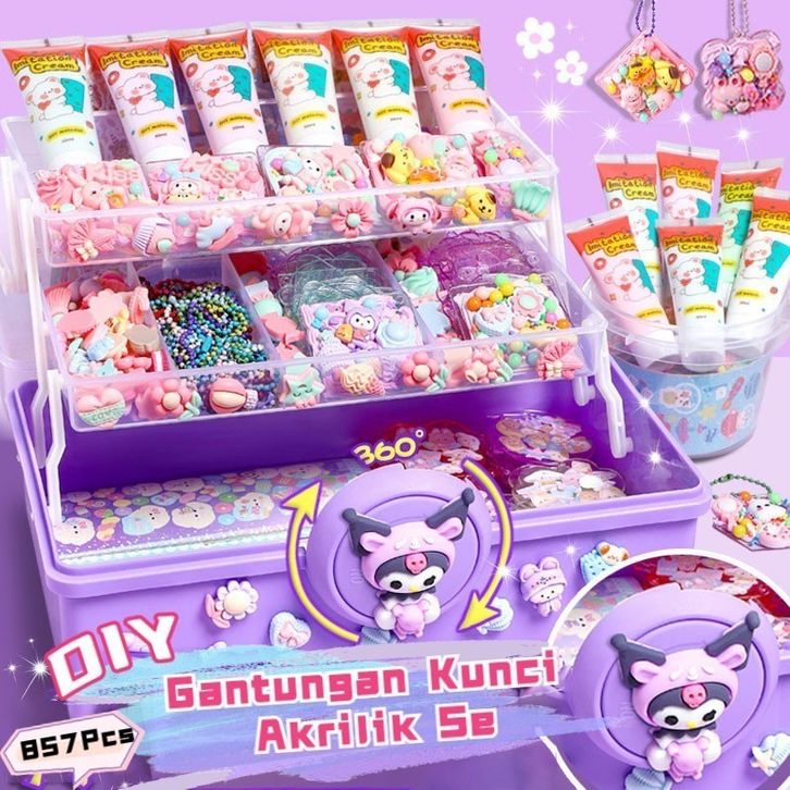 mainan anak laki laki perempuan Free Kuromi 522pcs DIY Gantungan Kunci Akrilik Set Mainan DIY Stiker lem krim Kreatif G