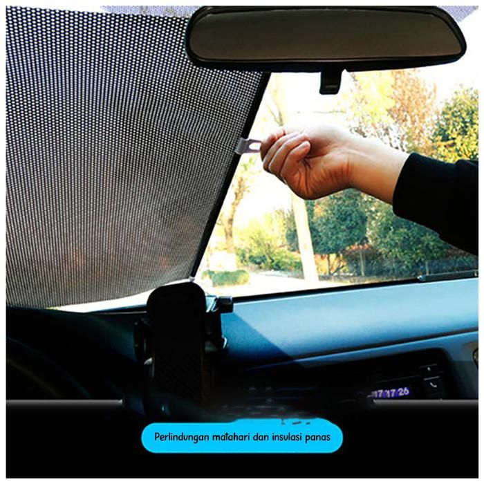 Pelindung Panas Kaca Mobil/Sun Shield Roll Dashboard Tutup Kaca Mobil - 45x125 cm hitam