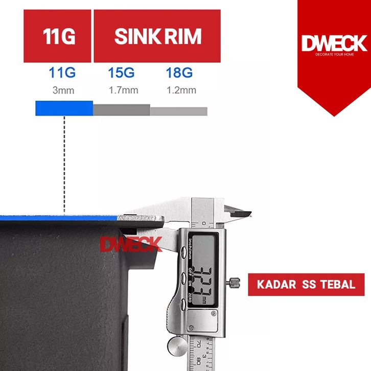 DWECK - Kitchen Sink Satu lubbang Sink Stainless Steel Bak Cuci Piring SUS 304