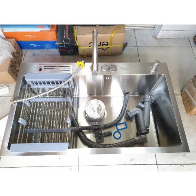 KITCHEN SINK 8050 7545 / Wastafel Bak Cuci Piring Stainless SUS304 Tebal 80cm x 50cm / 75cm x 45cm PAKET LENGKAP