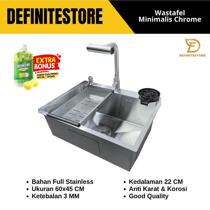 Kitchen Sink 1 lubbang 6045 Hitam Wastafel Cuci Piring 1 lubbang Stainless Sus 304 Anti Kelupas
